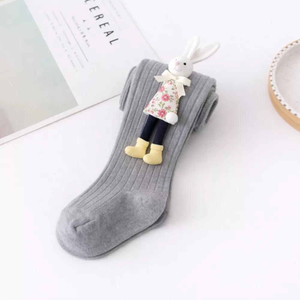 Szare Rajstopy dziecięce bawełniane z króliczkiem 3D