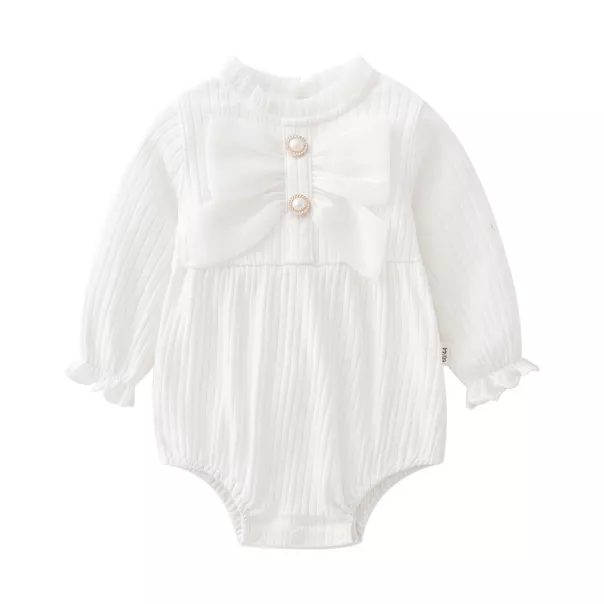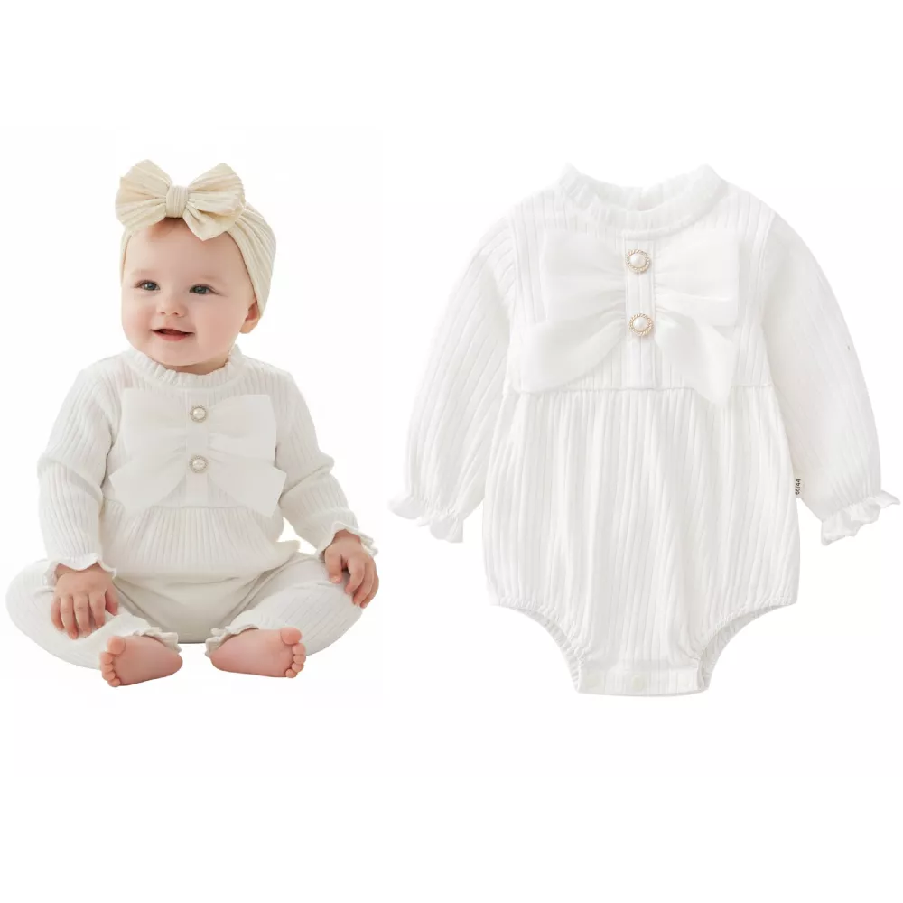 Białe Bawełniane body niemowlęce z dużą kokardą