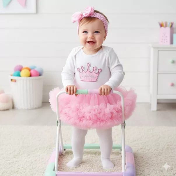 Urocze body z tiulową spódniczką i haftowaną koroną „Princess” – idealny zestaw dla małej księżniczki na każdą okazję!