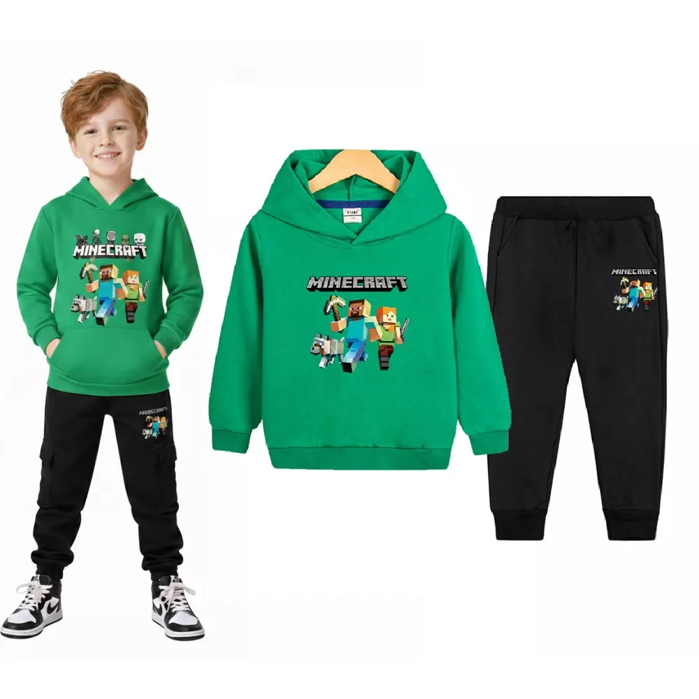 Komplet dla chłopca Minecraft z kapturem to doskonała propozycja dla małych fanów jednej z najpopularniejszych gier na świecie. Zestaw składa się z bluzy z długim rękawem oraz wygodnych spodni sportowych, tworząc praktyczne i modne ubranie na każdy dzień.