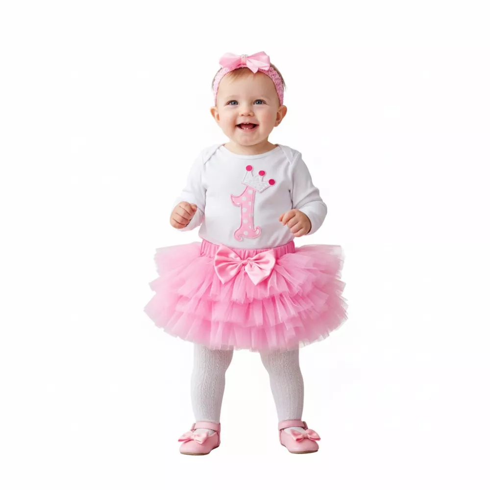 Ten niezwykle uroczy zestaw body i spódniczka tiulowa różowa na pierwszy urodziny został zaprojektowany z myślą o wyjątkowym dniu w życiu każdej małej dziewczynki – jej pierwszych urodzinach.