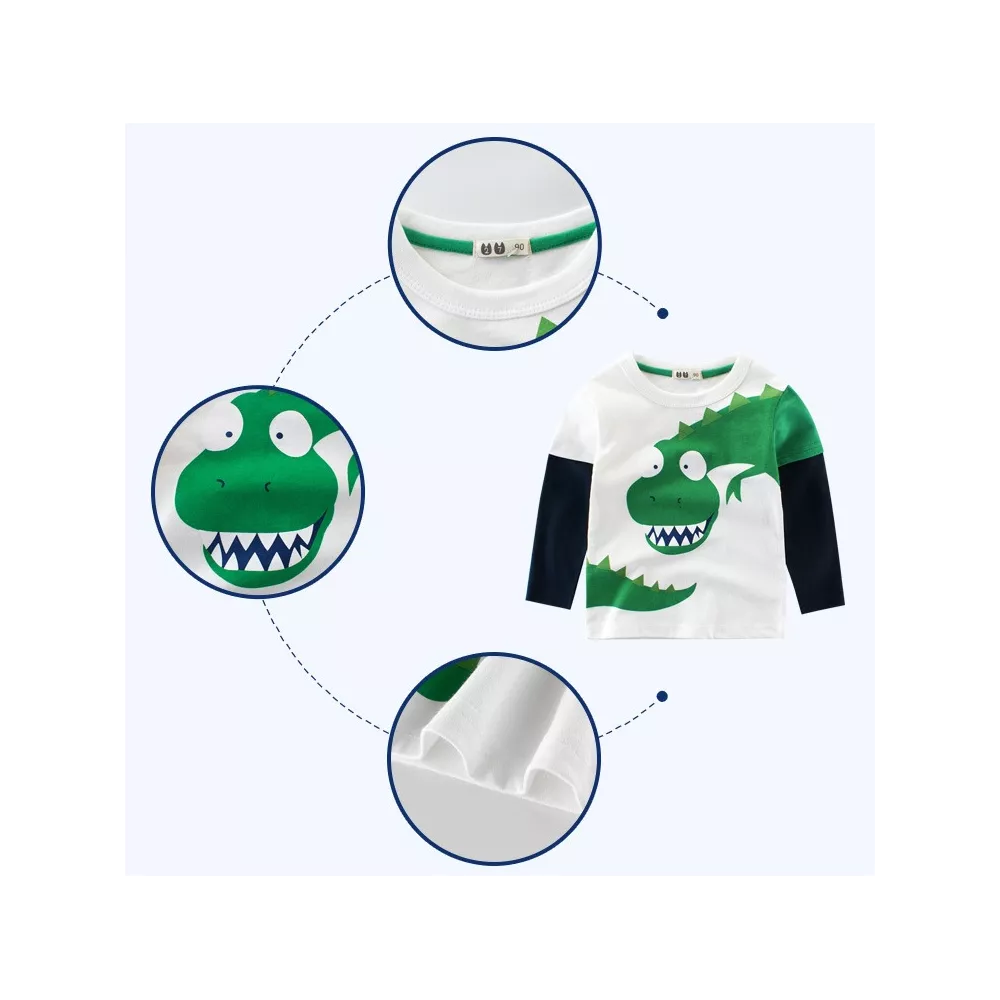 Bluzka dziecięca z długim rękawem Dinozaur to połączenie wygody, jakości i modnego designu, które z pewnością zachwyci zarówno dzieci, jak i rodziców. Wykonana z wysokiej jakości bawełny, koszulka jest miękka, przyjazna dla skóry i oddychająca, dzięki czemu zapewnia pełen komfort podczas noszenia przez cały dzień. Naturalny materiał nie powoduje podrażnień, a elastyczne szwy gwarantują swobodę ruchów – idealnie sprawdzi się zarówno podczas zabawy w domu, jak i aktywności na świeżym powietrzu.