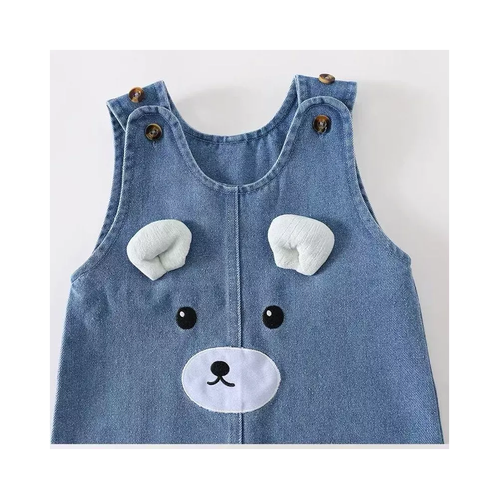 Uroczy jeansowy rampers z motywem misia, idealny dla dzieci od 6 miesięcy do 3 lat – wygoda, styl i słodki design w jednym.