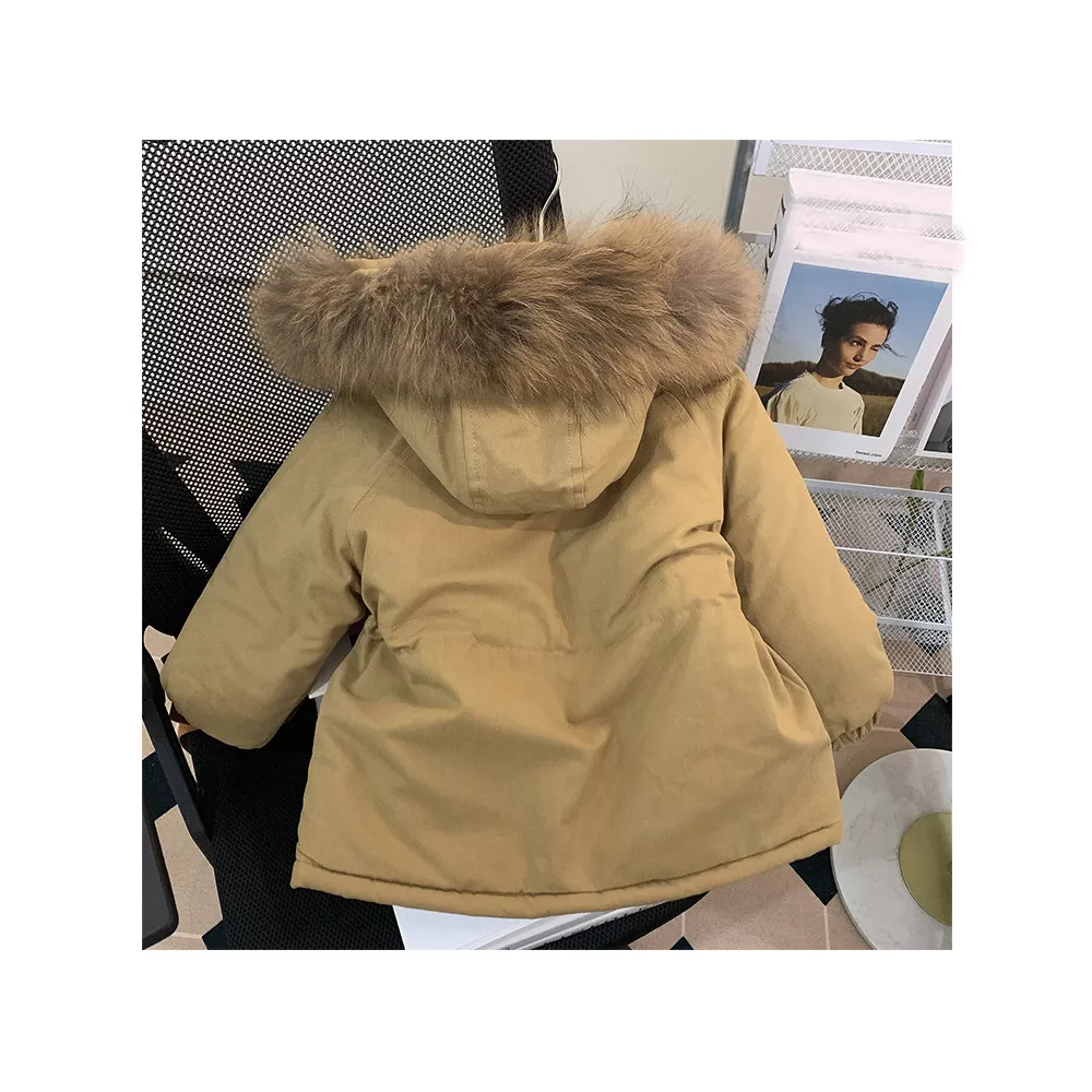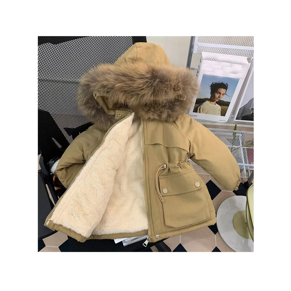 Stylowa i ciepła kurtka zimowa dla dziewczynki z miękkim futerkiem wewnątrz i kapturem z obszyciem z futra, idealna na mroźne dni.