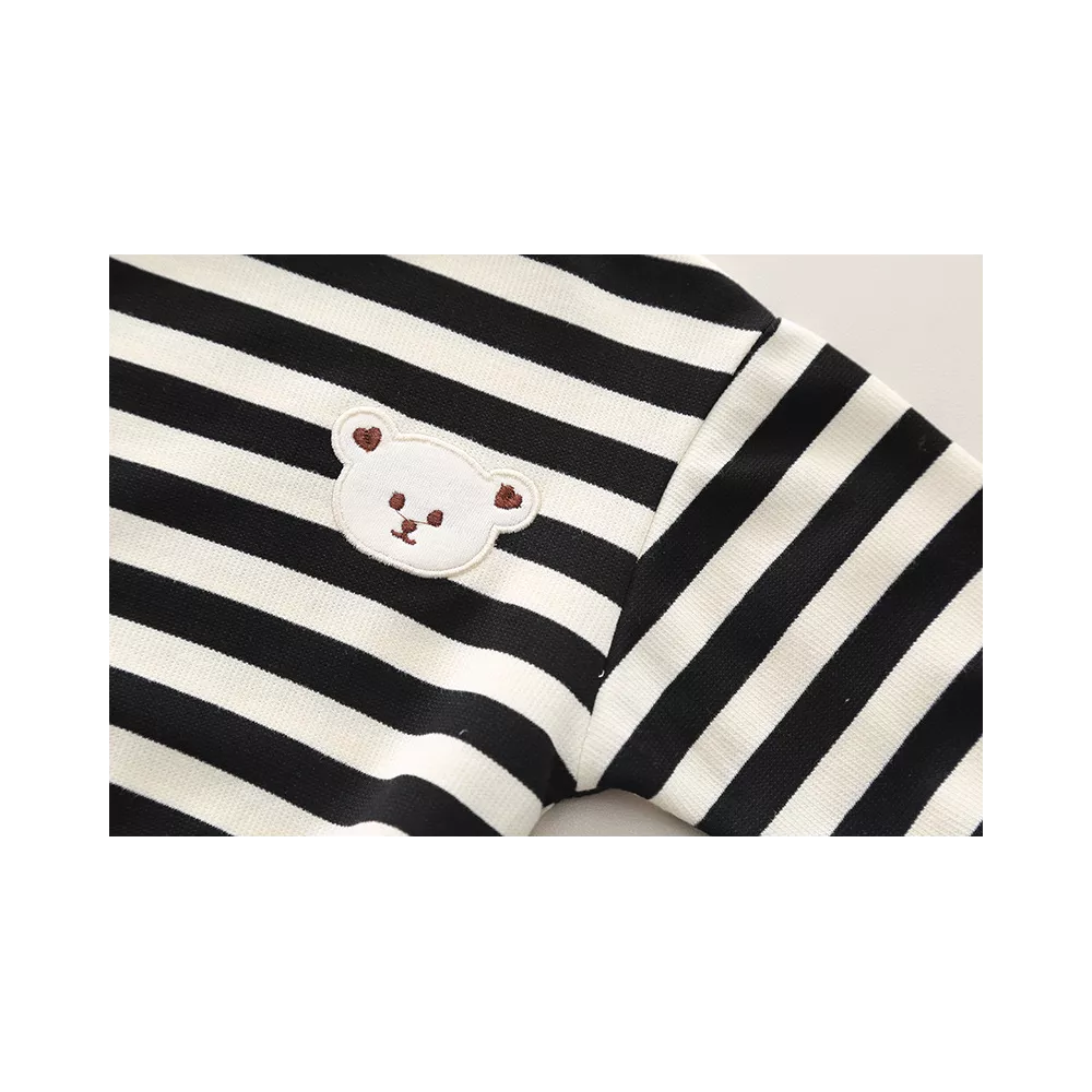 Zestaw ogrodniczki jeansowe i bluzka w paski dla dziewczynki to połączenie wygody, funkcjonalności i uroku dziecięcej mody. W komplecie znajduje się bluzka z długim rękawem w klasyczne pasy, dostępna w dwóch wariantach kolorystycznych – biało-czarnym oraz biało-musztardowym. Dopełnieniem zestawu są ogrodniczki jeansowe o luźnym kroju, które zapewniają swobodę ruchów i komfort podczas zabawy.