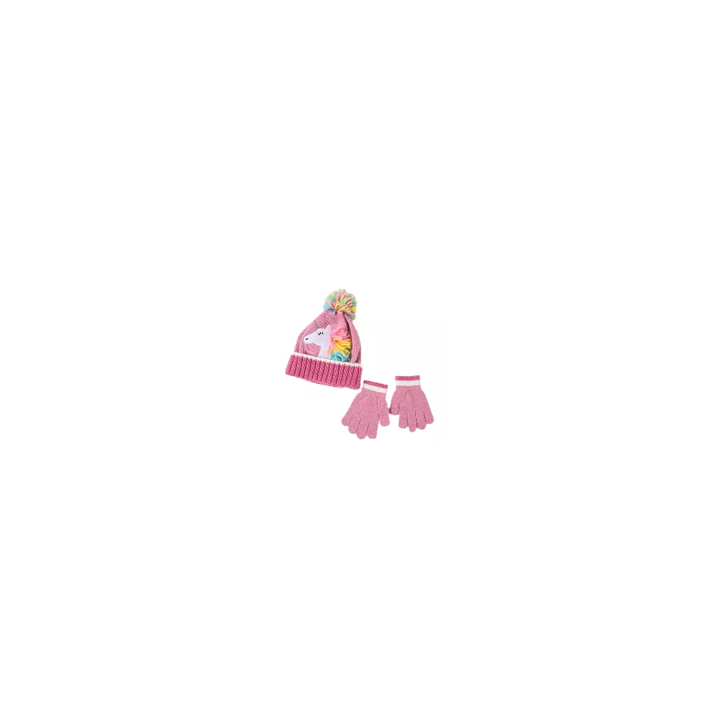 Zestaw zimowy dla dzieci czapka i rękawiczki różowe w jednorożca