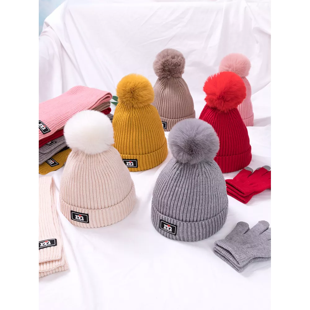 5Stylowy i ciepły zestaw zimowy dla dzieci – czapka z pomponem, szalik i rękawiczki, idealny na chłodne dni.